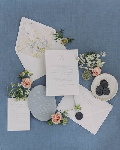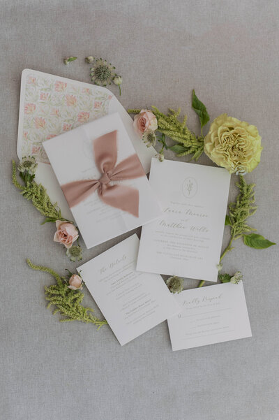 Creating your semi-custom suite begins with a conversation about your vision, your style, and the atmosphere you want for your wedding day. From there, we connect through a complimentary consultation to explore your options and refine the details that will make your suite uniquely yours. Together, we select envelope colors, papers, printing methods, typography, and finishing touches, thoughtfully curated to reflect your aesthetic and personality. Once your design is finalized, you’ll review a detailed digital proof before your suite is printed with care and beautifully packaged—ready to impress your guests and set the tone for your celebration. Every step of the process is designed to be seamless, personal, and joyful, resulting in stationery that feels timeless, intentional, and unmistakably yours.